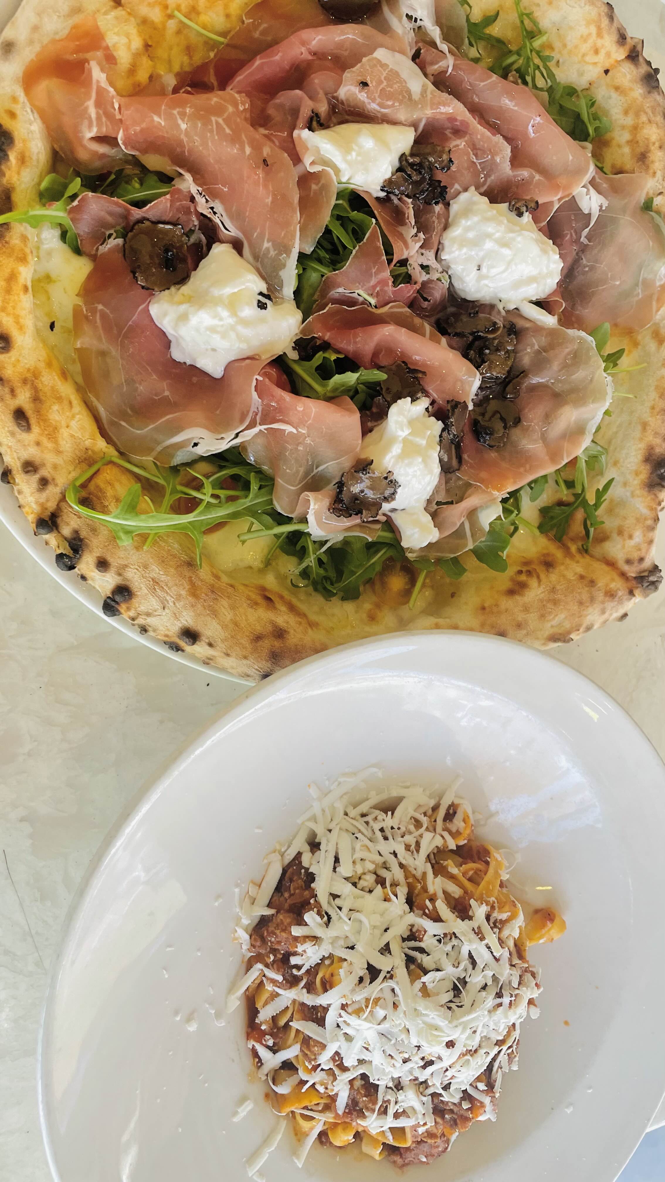 (프러슈토, 부라타 치즈, 트러플, 토마토, 바질, 아르굴라)