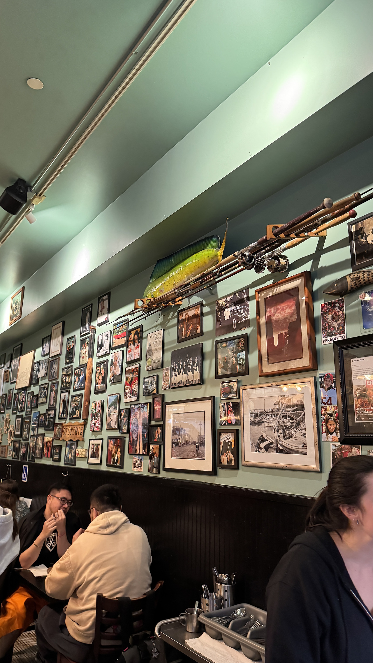 액자랑 생선 모형이 다닥다닥 붙어있는데